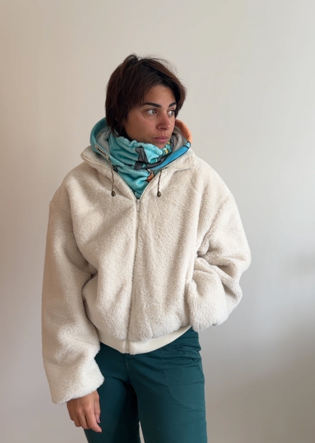 - 🧣 Tour de cou intégré à la capuche, avec double serrage (au niveau du visage et du cou).