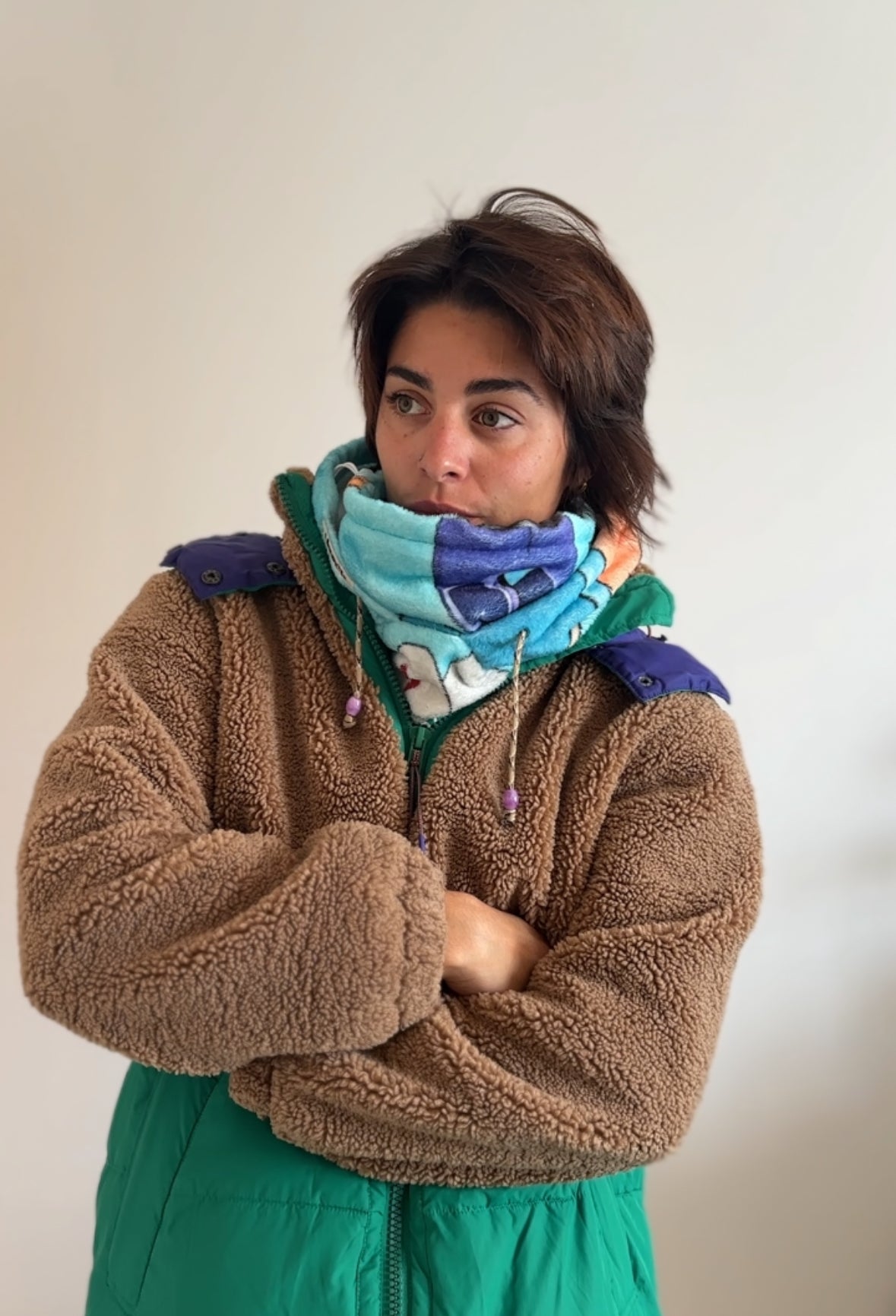 🧢 🌿 Une capuche 3en1 : capuche réglable, tour de cou ajustable et écharpe large, ultra douce et cocooning. Fait main en France, en série limitée spécial Grimpeurs, LaZipette 💜
