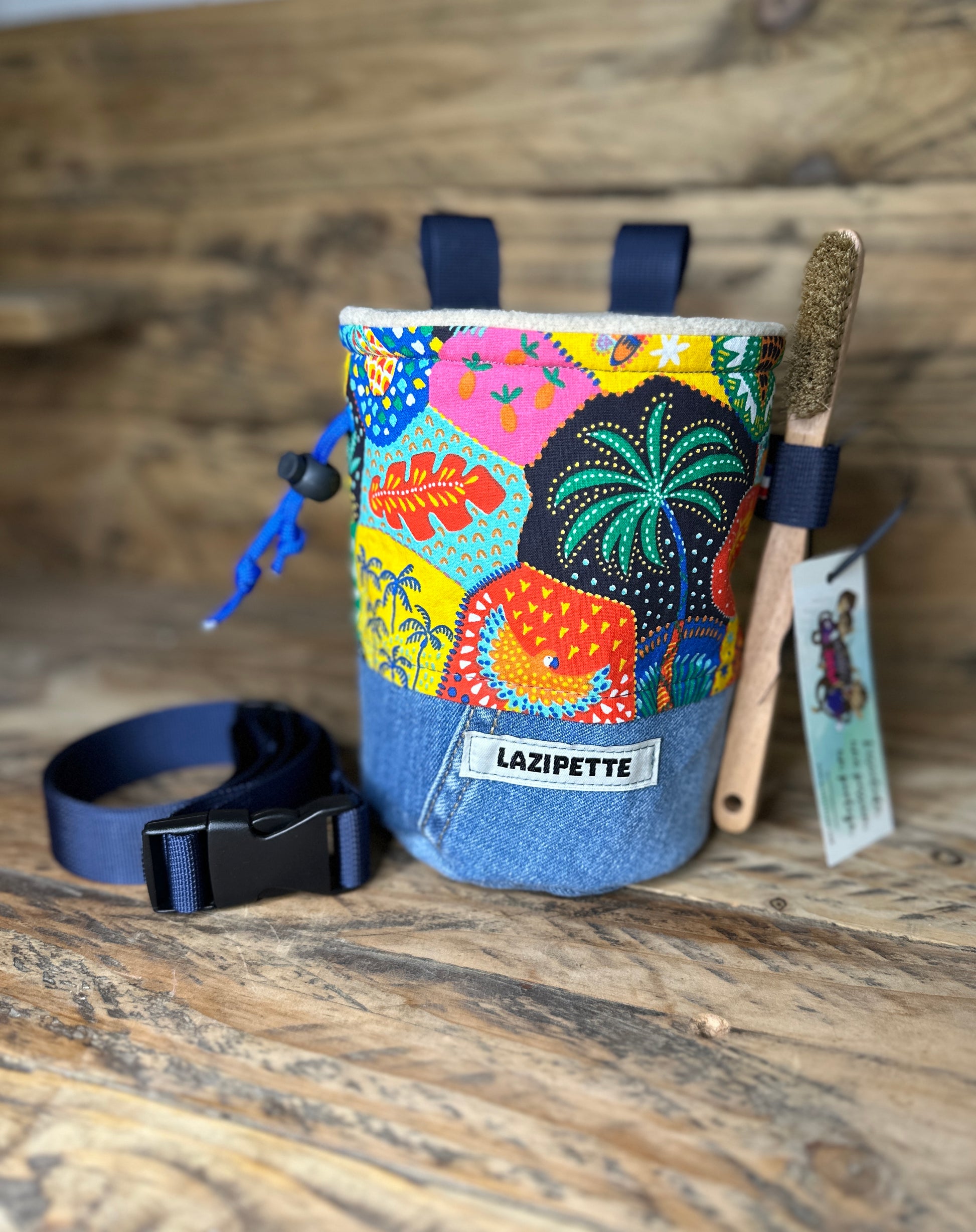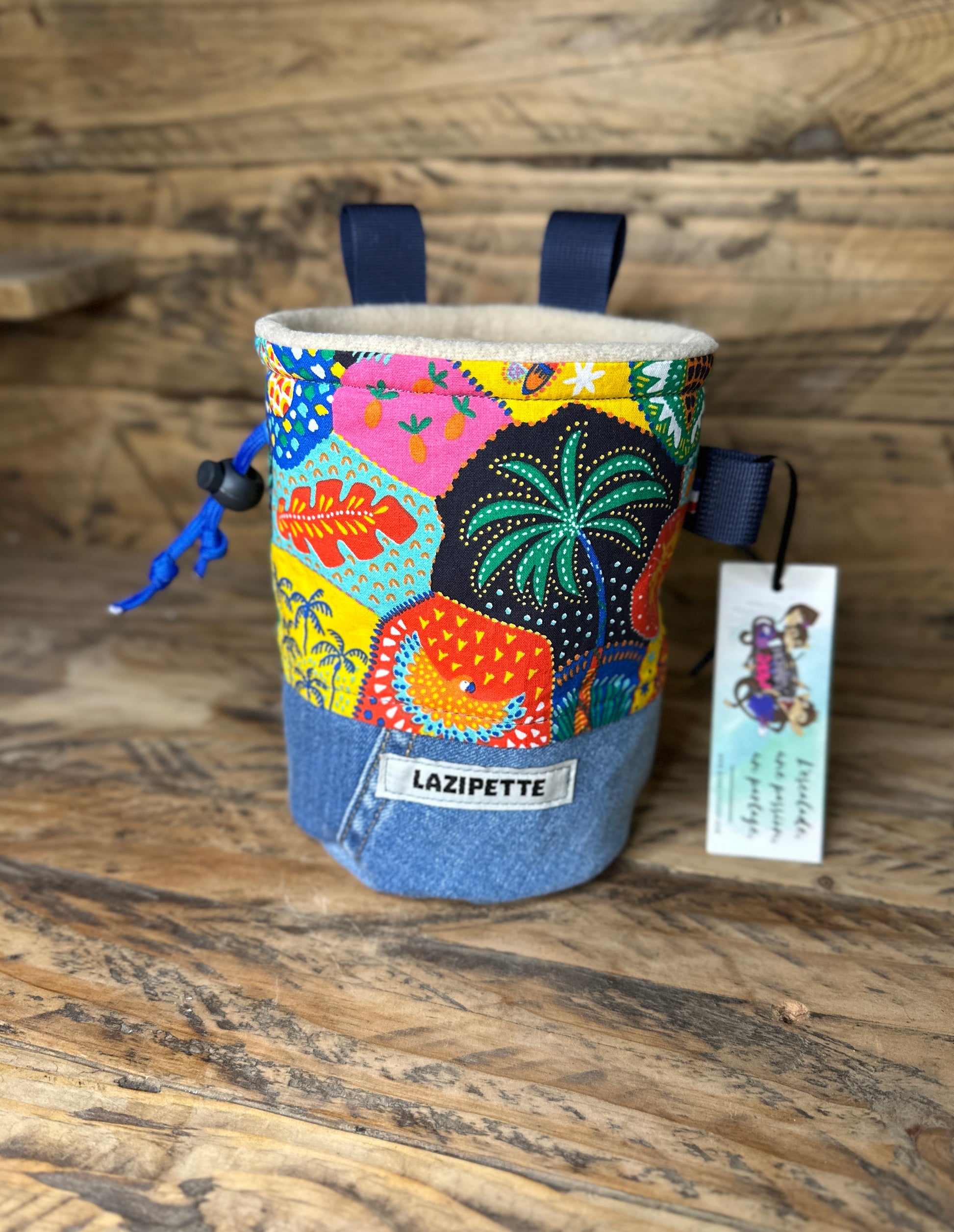 Sac à pof fait main à partir de matières recyclées et neuves.