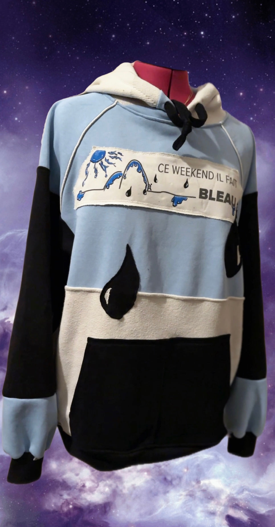 Sweat Patchwork « Bla Bla Bla / Ce week-end il fait BLEAU »